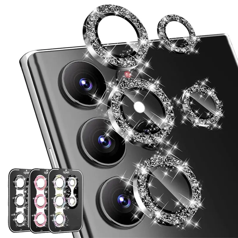 Diamond Glitter Lens Glass For Samsung Galaxy S25 Ultra Plus S24 Ultra HD Clear Camera Protector For Samsung S23 Plus Metal Ring Lens Film