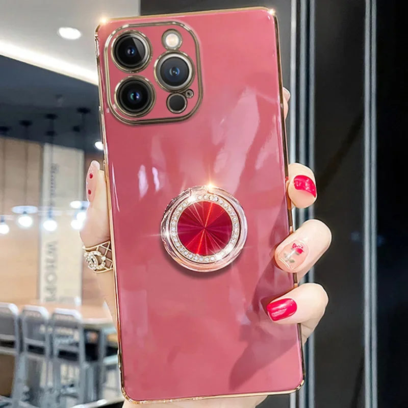 Diamonds Finger Ring Holder Stand Case For iPhone 15 15 Pro Max 15 Plus 13mini 14 13 12 11 ProMax Plating Bracket Cover