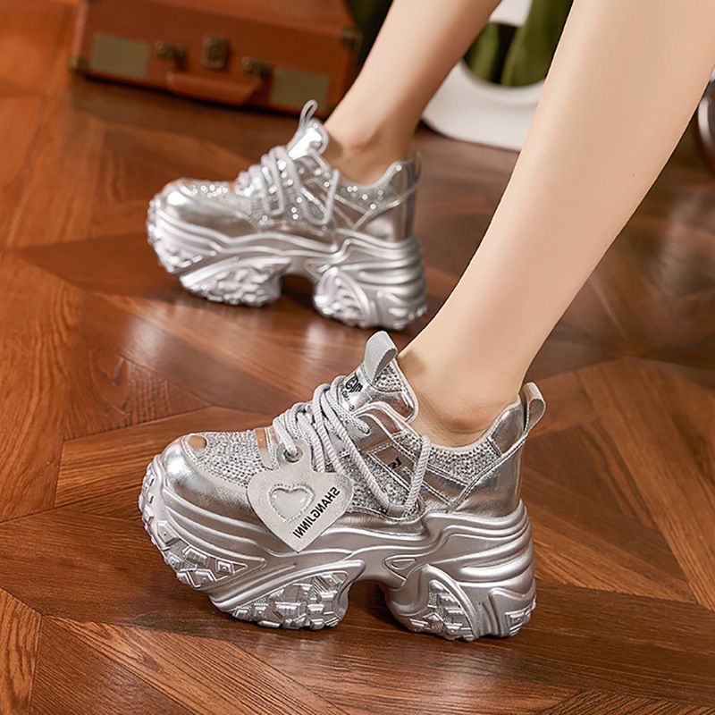 Thick soled dad shoes for women, 2024 autumn new item, rhinestone versatile, explosive street sports and leisure shoes, height increasing women's shoes inside