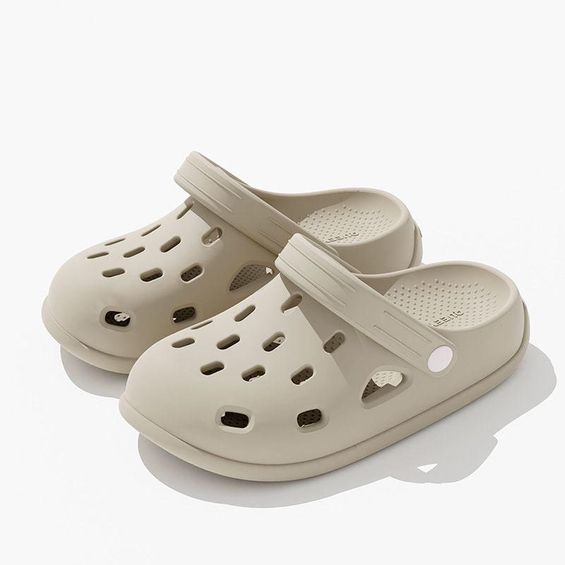 Thick soled perforated shoes for men, summer outerwear, 2025 new anti slip beach shoes, with a sense of stepping on poop, toe caps, slippers for women, couple