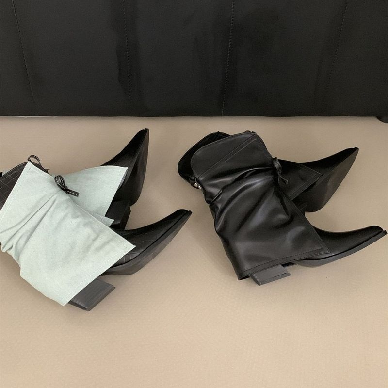Autumn Niche Pointed Toe Bowknot Jeans Boots Pointed Toe Chunky Heel Blue Short Boots Denim Boots for Women