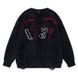 "Digital Print Lace-Up Knit Sweater – Unisex K-Fashion Oversized (3 Farben, S-L, Nylon-Mischgewebe)"