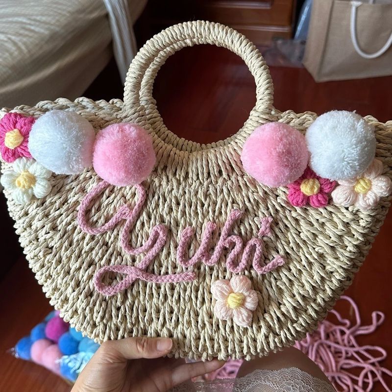 DIY handgemachte Strand Urlaub Brief Handheld Schulter Papier Seil Damen Stroh Tasche