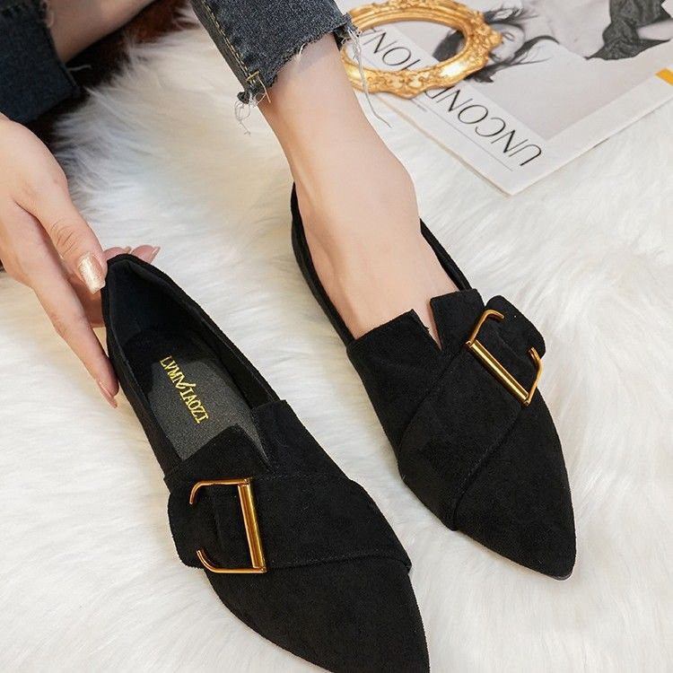 Doudou Frühling und 2025 Neue Vier Jahreszeiten Boot Für Frauen Spitzschuh Internet Promi Einzelnen Flachen Große Größe Herbst