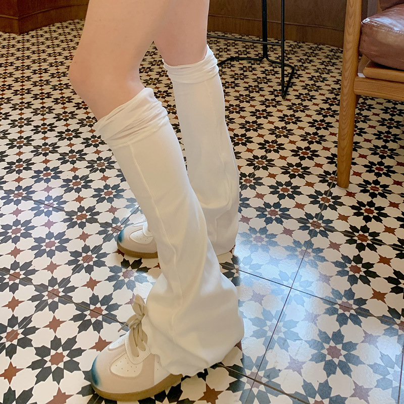 Dünne, farblich passende, elastische Beinstulpen aus gerippter Baumwolle in Schwarz, Weiß und Grau, schlichte, dünne Mittelrohrsocken, breite Beinsocken für Damen
