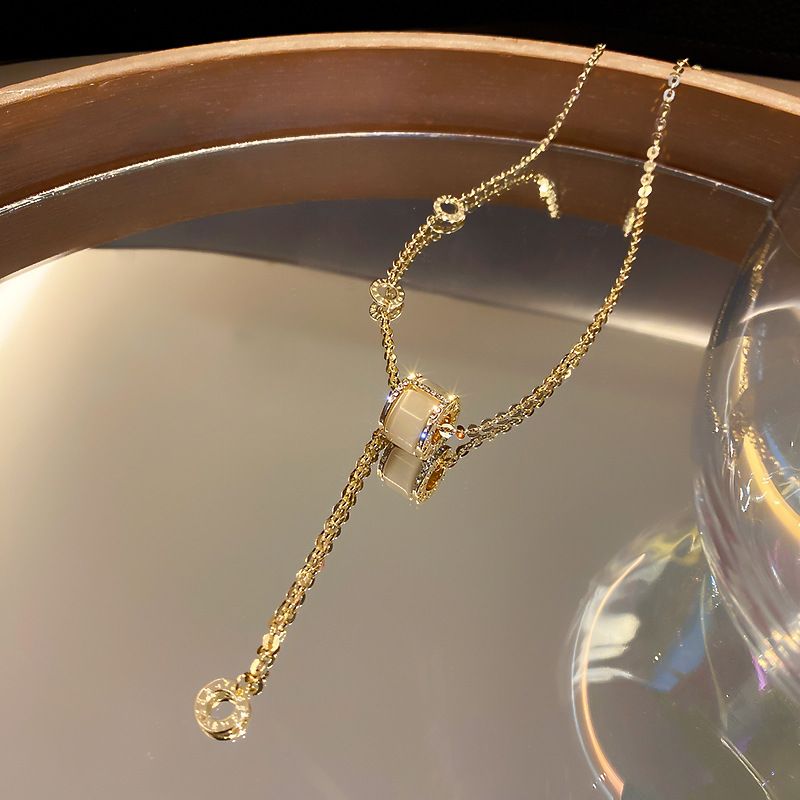 Echt vergoldete Micro-Intarsien-Zirkon-koreanische Mode einfache römische Ziffer Katzenauge Internet-Promi-Halskette