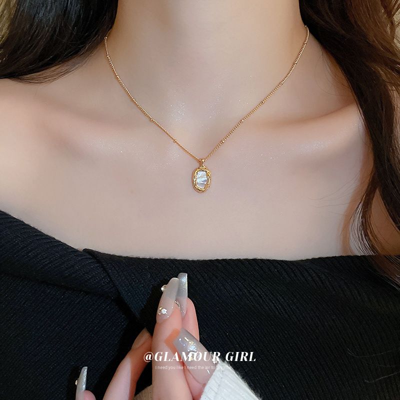 Echt vergoldete ovale unregelmäßige Perlmuttkette, modische französische Schlüsselbeinkette, Nischenschmuck im High-End-Sinn