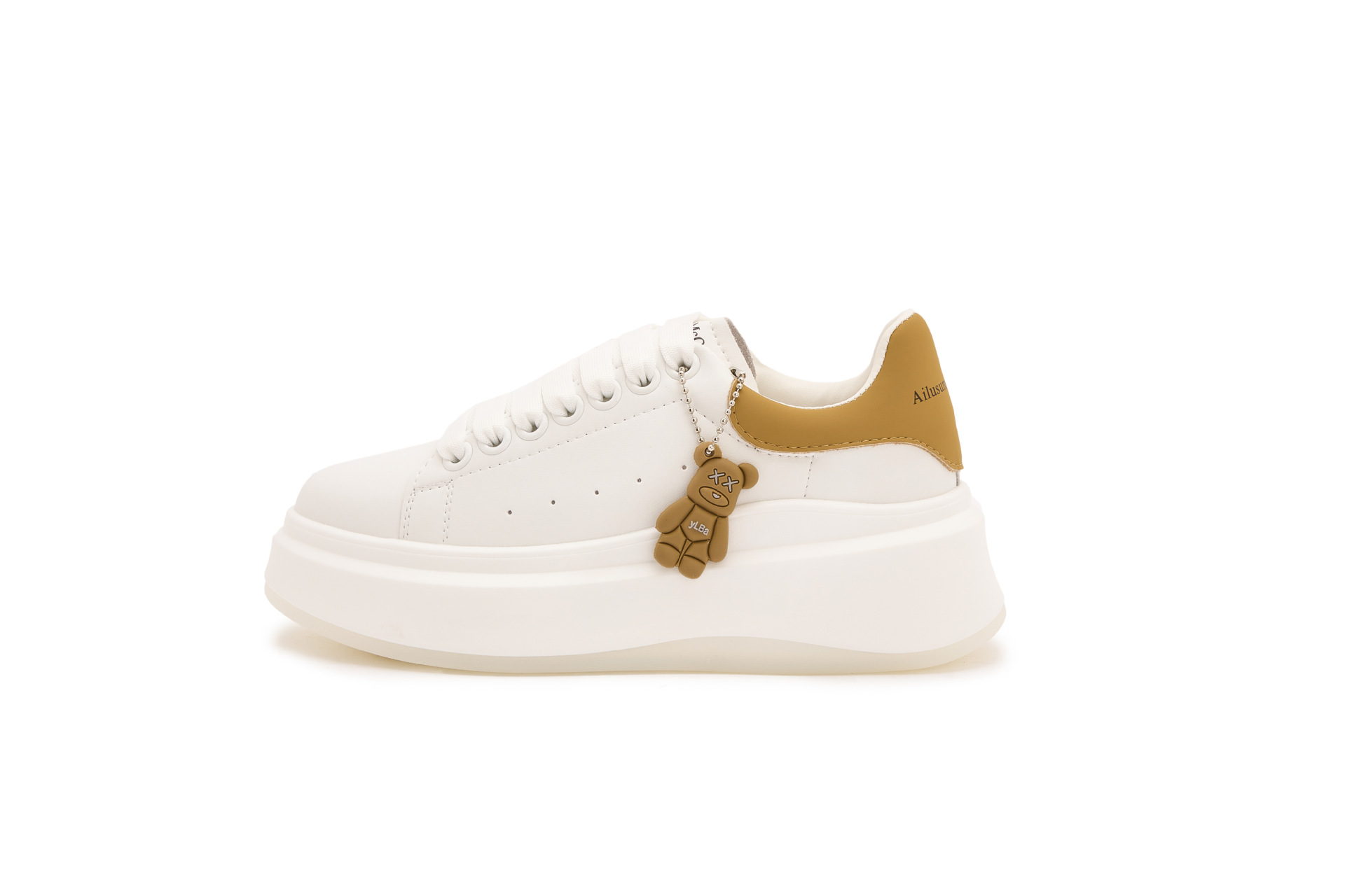 Real leather McQueen versatile white shoes, women's thick sole 2024 spring new shoes, bear sole super hot height increasing board shoes