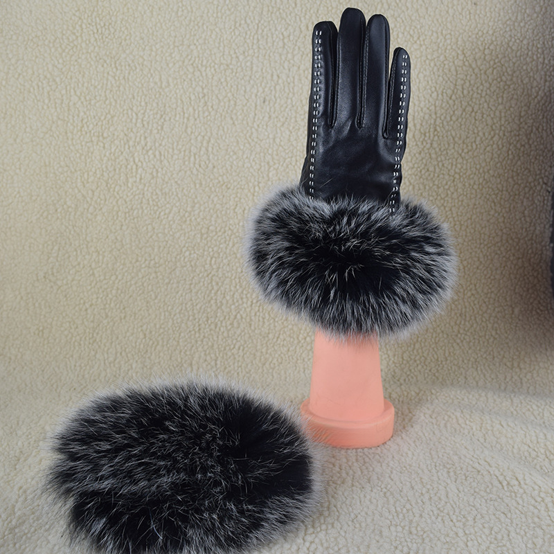 Echtes Outdoor-Leder für Damen, vollständiger Touchscreen, echter Fuchspelzbesatz, modisches warmes Schaffell für Herbst und Winter