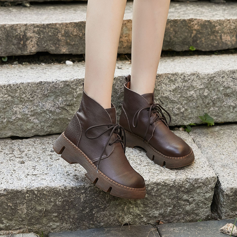 Echtleder-Martinstiefel mit dicker Sohle für Damen, kurze Arbeitsstiefel im britischen Stil, modisch, leicht, vielseitig