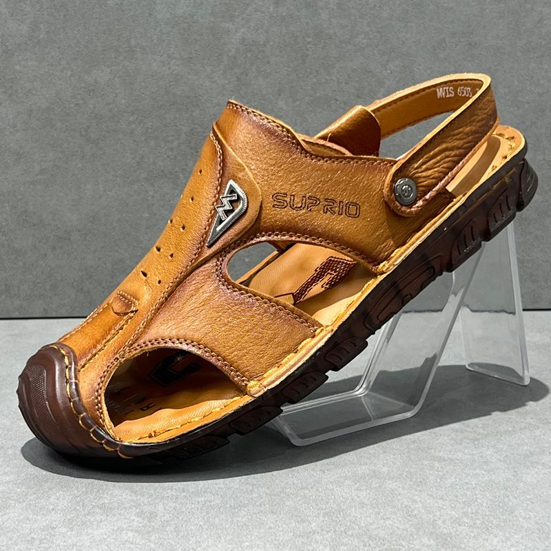 Genuine Leather Sandals for Men, New Summer Breathable Cowhide Sole, Closed Toe Beach Shoes, Men's Outdoor Dual-use Driving Slippers