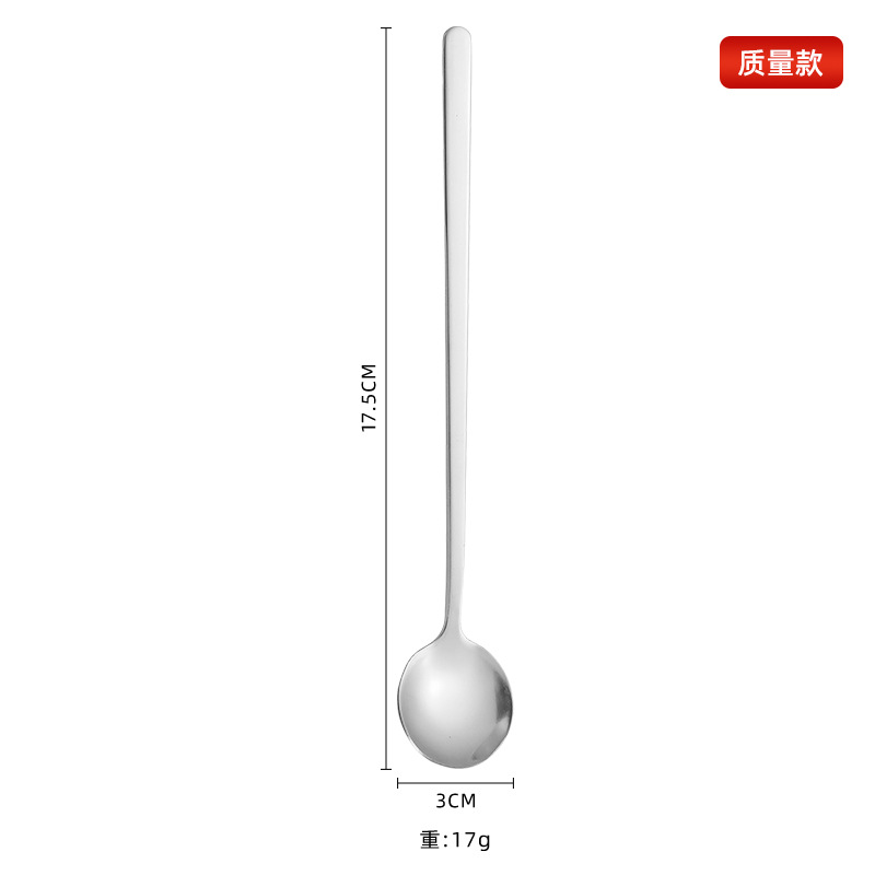Stainless Steel Long Handle Ice Spoon Stirring Seasoning Spoon Bird's Nest Dessert Small Round Spoon Mug Coffee Stirring Spoon Round Spoon