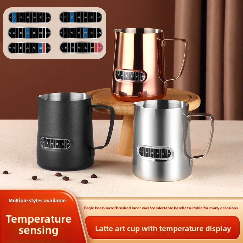 Stainless Steel Pointed Spout Temperature-Sensitive Coffee Latte Art Milk Frothing Pitcher Temperature Display Latte Art Cup Milk Frothing Cup