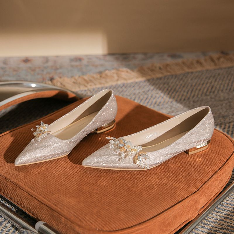 Einfache Bankett Spitzschuh Flache Damenschuhe, Abnehmbare Dual Purpose Hochzeit Hundred