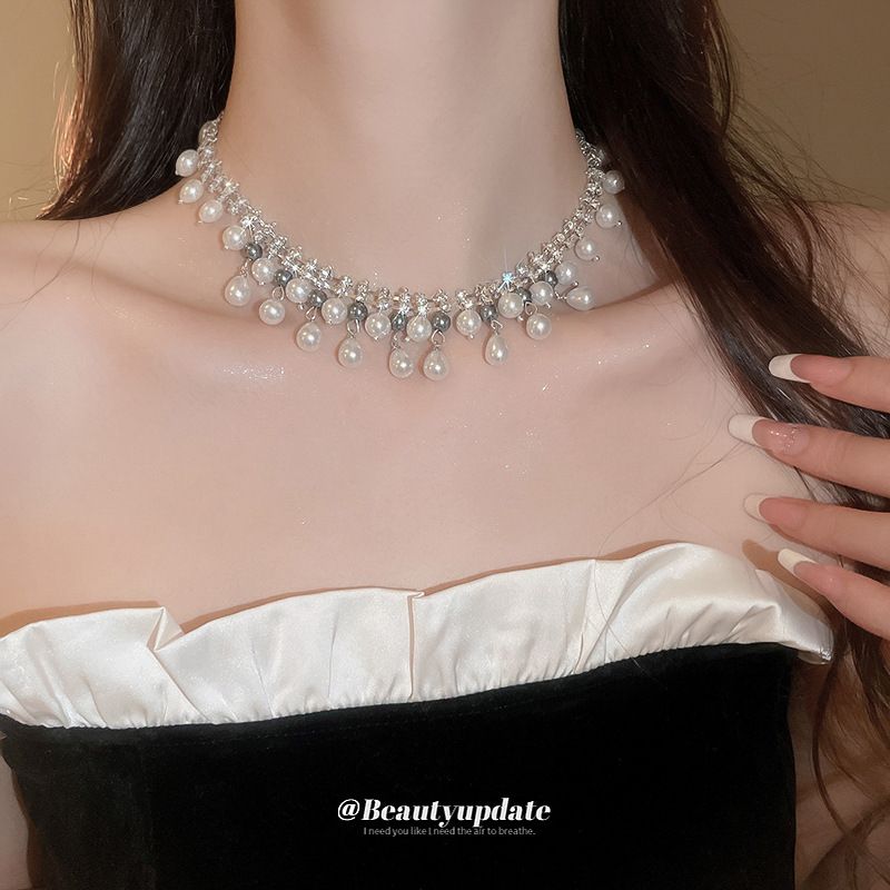 Eingelegte Perle Wassertropfen Design Sinn Nischenmode Vielseitige Persönlichkeit Schmuck Halskette