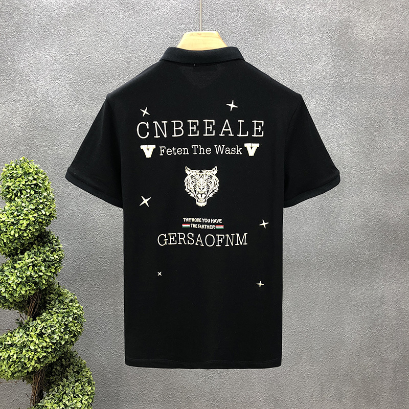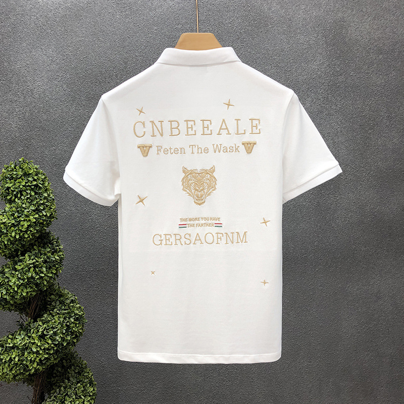 Embroidered Polo collar shirt for men, trendy summer leading T-shirt for men, casual short sleeved, versatile half sleeved