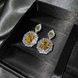 This set of European and American style colored treasure suits is an eye-catching weapon that fills the sense of luxury! The main stone is made of rich blue zircon, which is embellished with bright yellow zircon. The contrasting colors are like rubbing the starry sky into jewelry, and the cutting surface reflects dazzling light. From a distance, it is comparable to the extravagance of natural sapphire.
