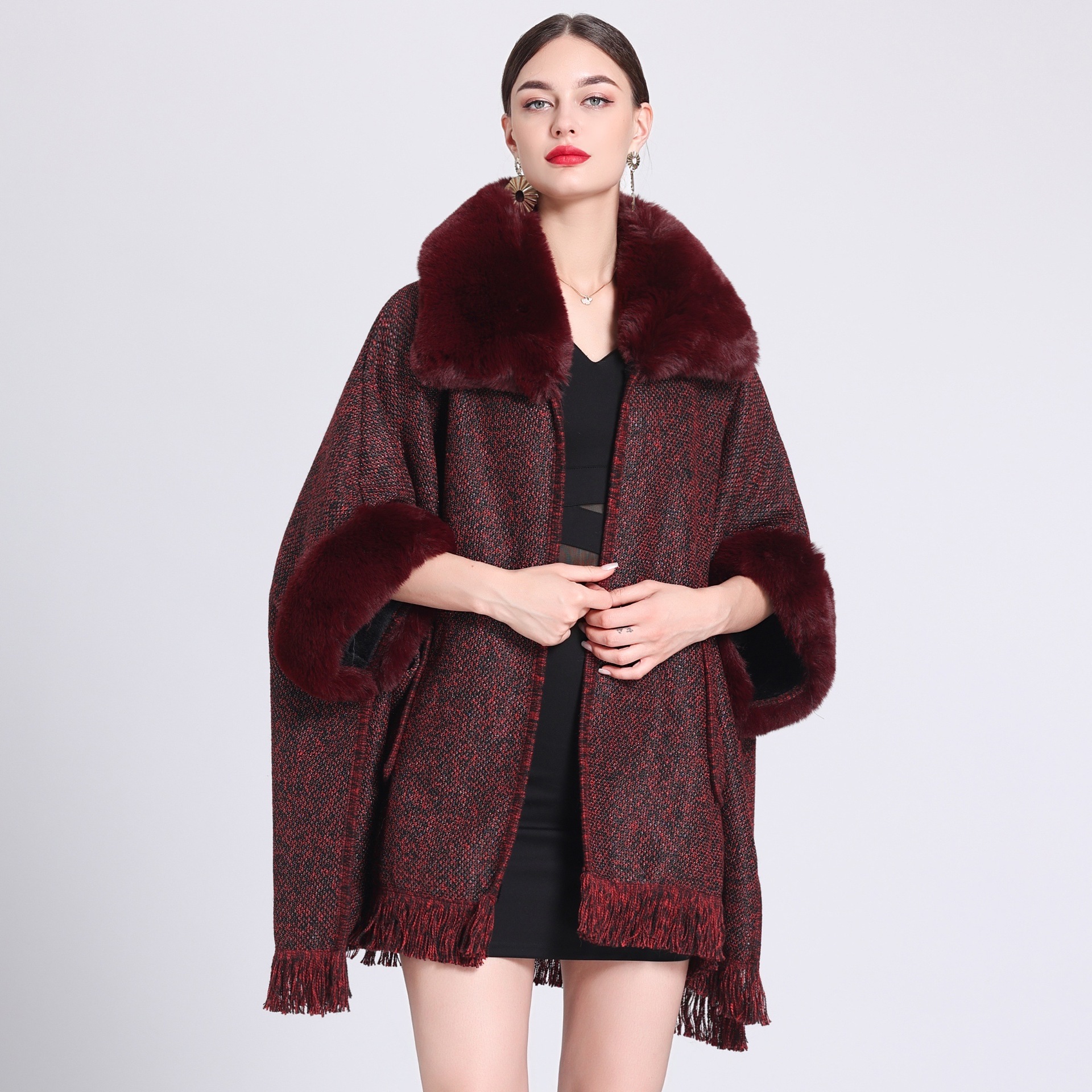 Extra Fleece, extra dicker Umhang mit Pelzkragen, lockerer großer Strickjackenmantel für Damen