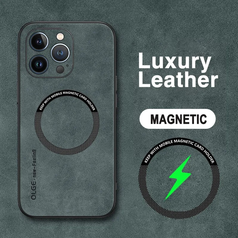 Magnetic For Magsafe Leather Case For iPhone 15 Pro Max 14 13 12 Pro Max 11 Sheepskin Leather Iron Ring Magnetic Case Cover