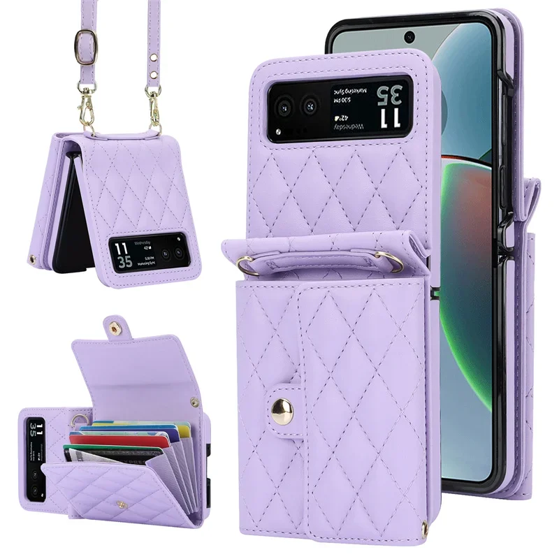 For Motorola Razr 40 Case PU Leather Crossbody Lanyard Holder Magnetic Snap Wallet Phone Cover For Motorola Moto Razr 40 Razr40