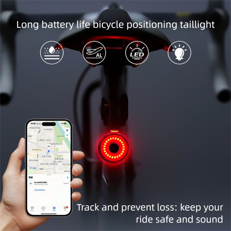 Bicycle Riding Tail Light with Positioning Anti-Lost Device Road Mountain Bike Warning Light Anti-Theft Hidden Locator