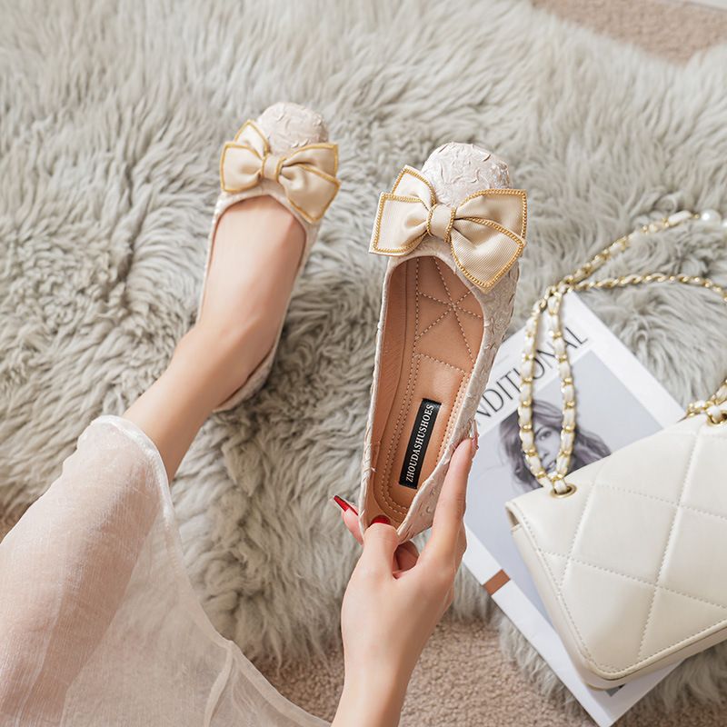 Fairy Shoes Gentle Single Shoes Evening Breeze Square Toe Flat Loafers French Satin Boat Shoes Women Autumn Soft Sole Large Size Women's Shoes