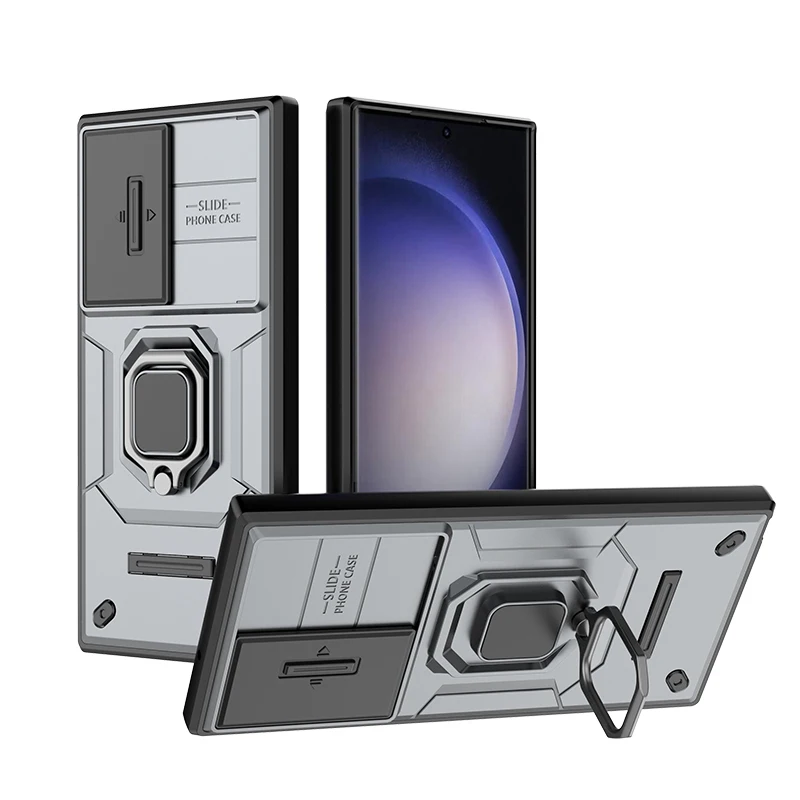 Fall Für Samsung S23 Ultra Plus A54 A34 A14 A24 4G 5G Slide Kamera Ring Stehen Rüstung anti-fall Schutz Kickstand