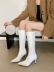 Fall Winter Combat Boots Slimming 7cm Elastic Boots PU Leather Elegant Pointed Toe Over-the-Knee High Heel Long Boots for Women