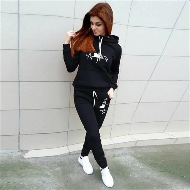 Modischer Kapuzenpullover für Herbst und Winter, lässiger Outdoor-Anzug für Damen, Sportbekleidung + Jogging-Sporthose