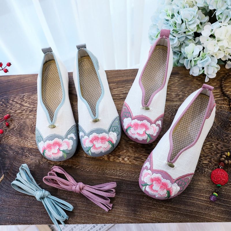 Flat shoes, cowhide sole embroidered fabric shoes, soft soled women's singles shoes, spring and summer Hanfu shoes, dance shoes, women's singles shoes
