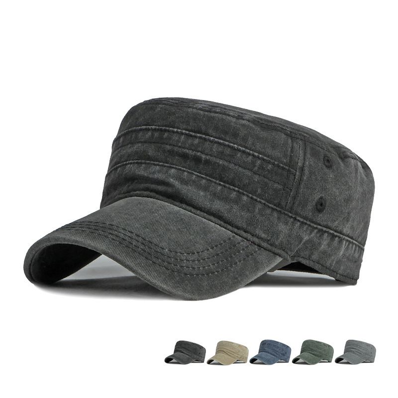 Flacher Zylinderhut Herren Militärhut Frühling und Sommer Gewaschener alter Herrenhut Koreanischer lässiger Entenzungenhut Modischer Sommersonnenhut