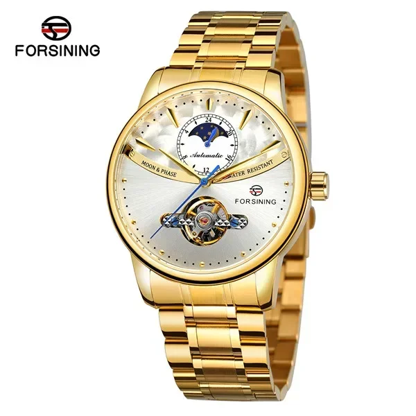 FORSINING Business Herren Automatikuhr Uhr Mondphase Tourbillon Wasserdicht Mechanische Stahlband Armbanduhr Relogio