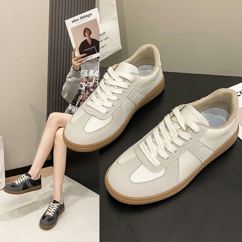 Frühjahr/Sommer Neues Deutsches Training Für Damen: Einfache Lederoberfläche, Lässige Dicke Weiße Schuhe, Unterseite Aus Rindsleder,