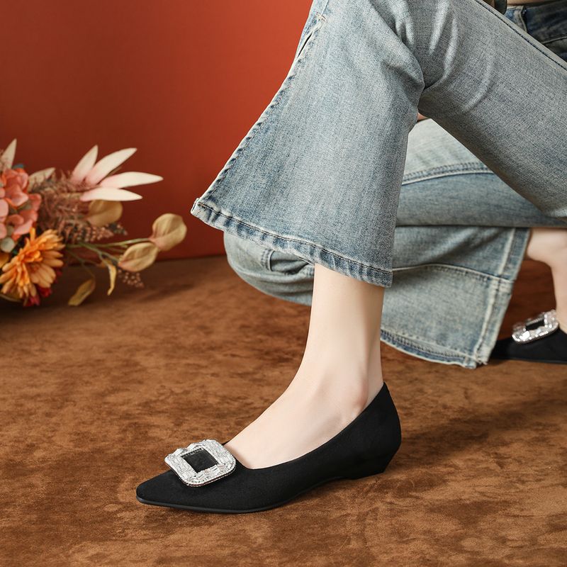 Frühling Neue Strass Quadrat Schnalle Ultra Weiche Single Mit Ferse Wildleder Schwarz Faul Flache Schuhe Für Frauen High-End Kleine