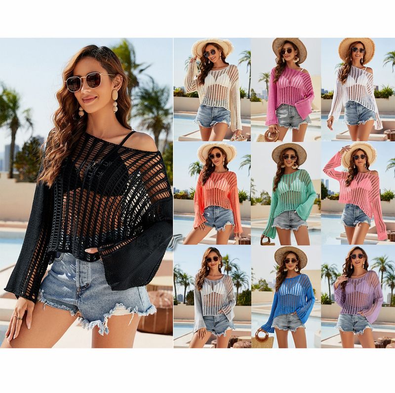 Spring Summer Knitted Sweater for Women Hand Crocheted Blouse Off Shoulder Hollow Out Women's Knitted Sweater