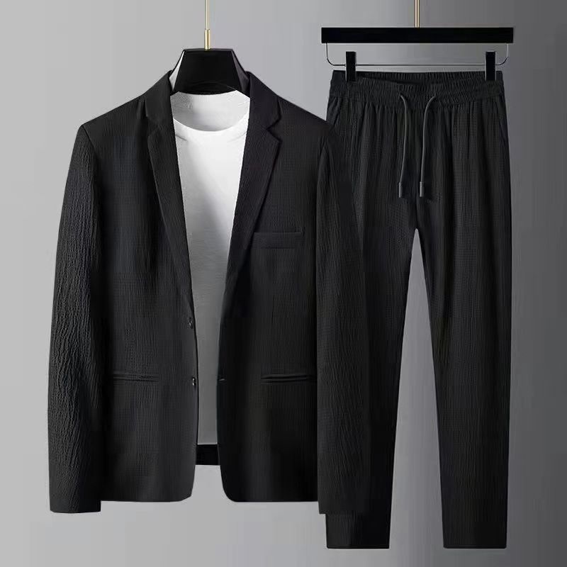 Frühling und Herbst Dünne Eisseide für Herren Korean Slim Fit Jugend Casual Anzug Zweiteiliges Set