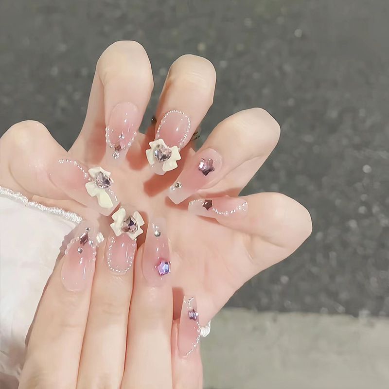 French Handmade Wearing Nail Cute Nail Patch Love Bow Knot Detachable Nail Panel Finished 10 Pieces in Size
