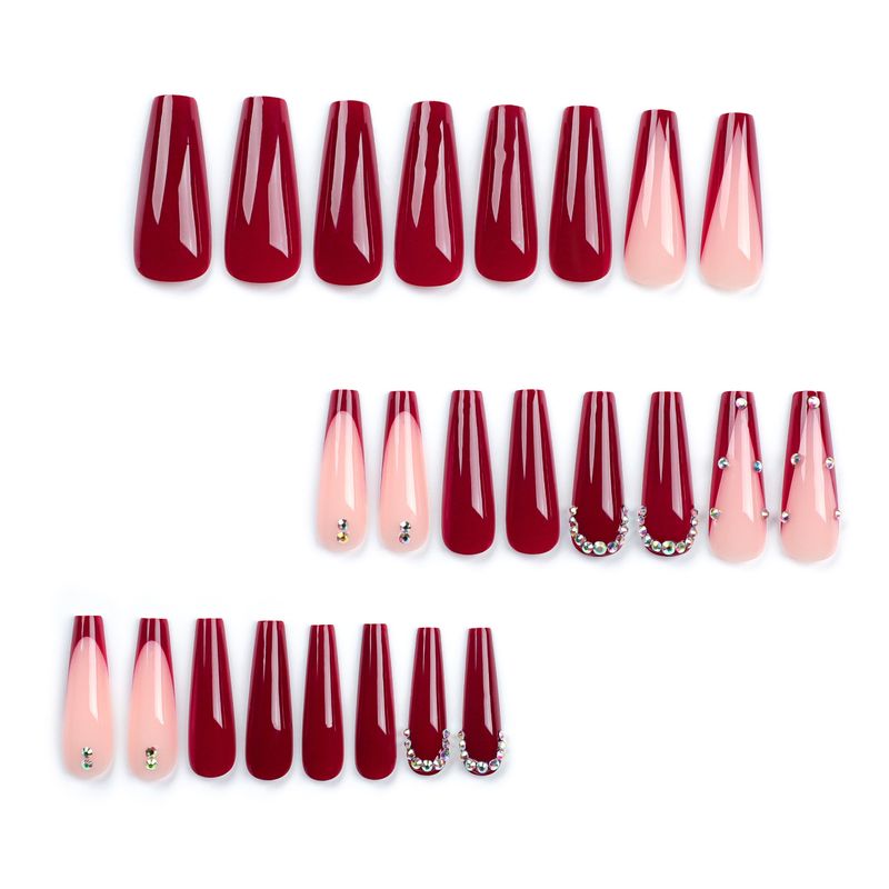 French rectangular wine red wearing armor, broken diamond solid color whitening nail polish, simple and elegant, detachable new year nail patch