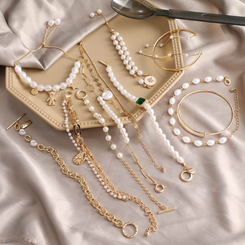 Französisches leichtes Luxus-Armband mit unregelmäßigen Perlen, Legierung, Temperament für Mädchen, einfaches mehrschichtiges Armband, Handschmuck-Set