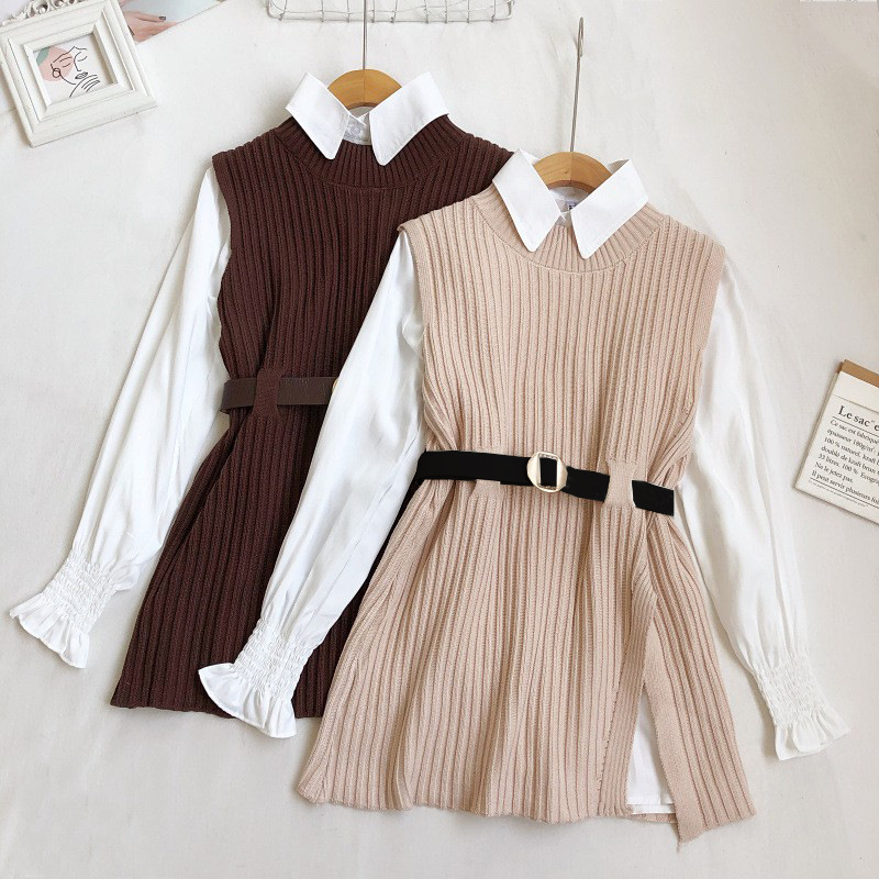 Knitted Shirt Women 2023 Spring and Autumn New Style Fat Sister Western Style Shirt Knitted Vest Skirt Two Piece Set