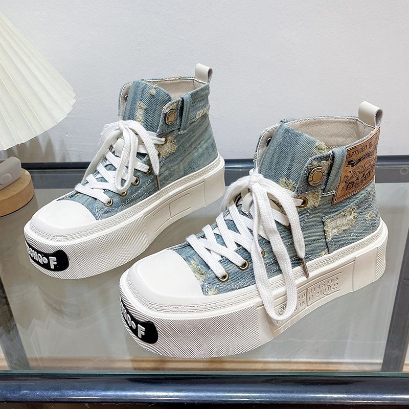 2025 Fall/Winter New Women's High-Top Canvas Sneakers Thick-Sole Casual Shoes Stylish Versatile