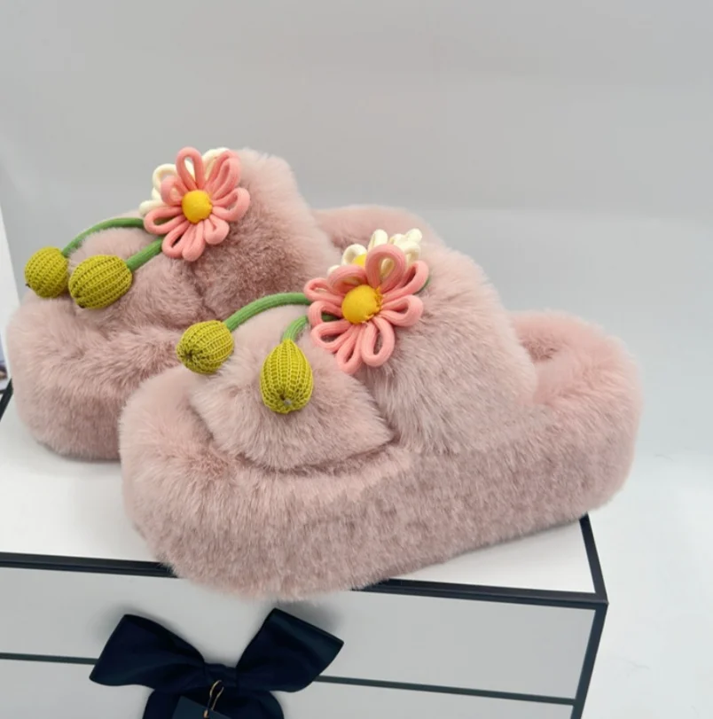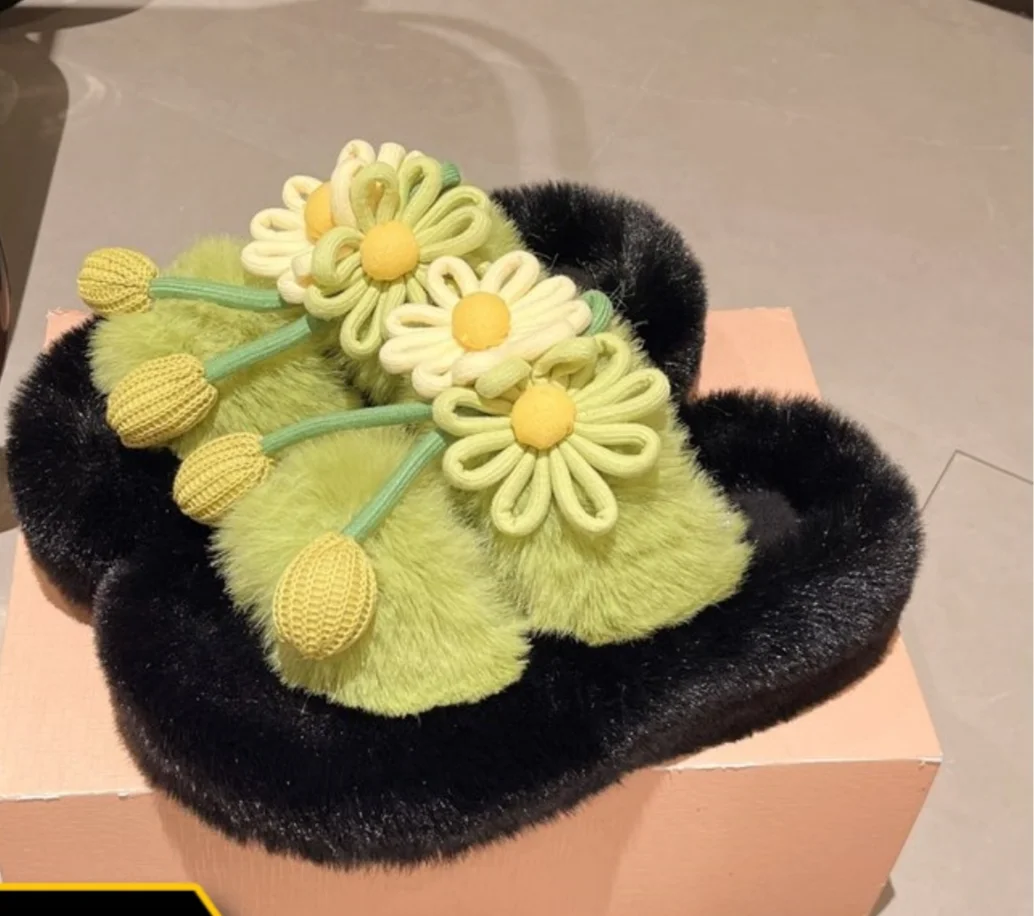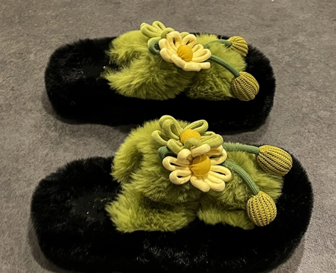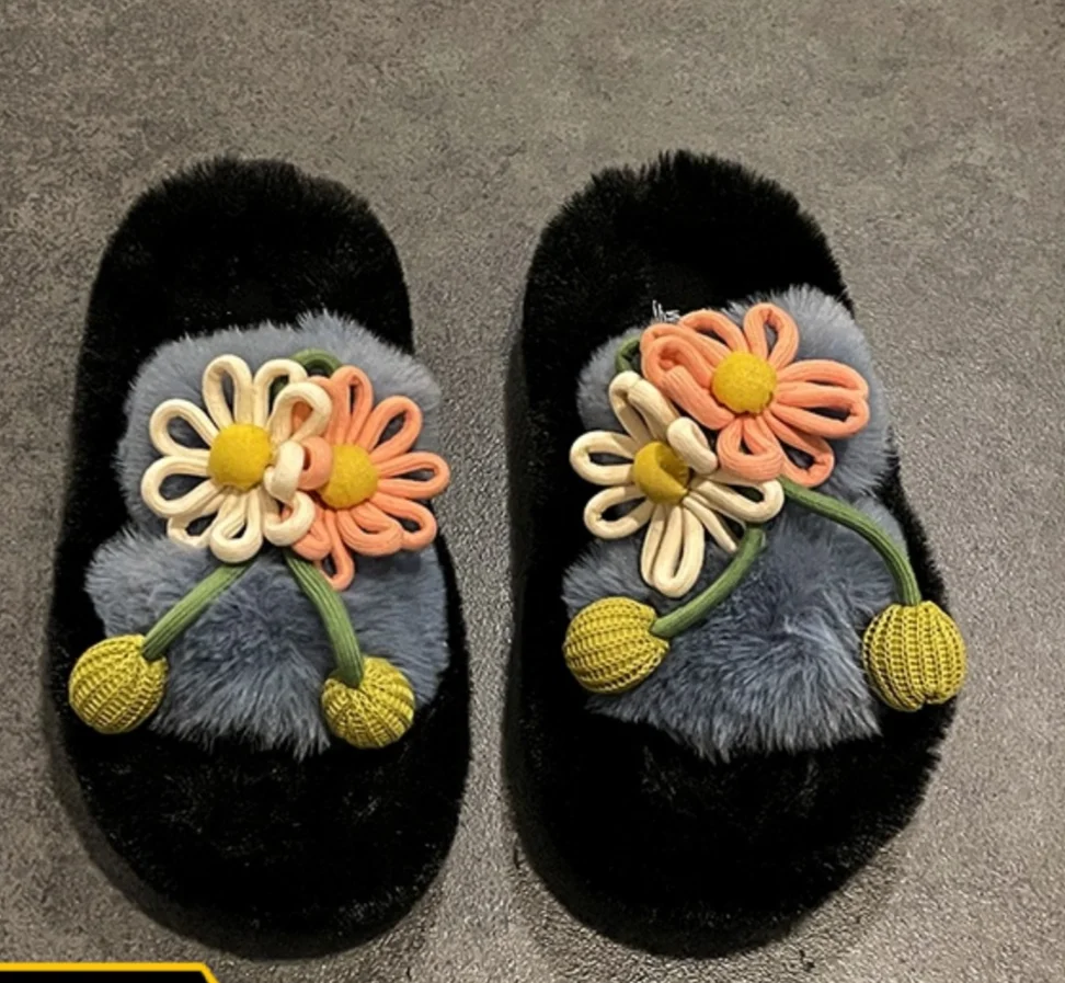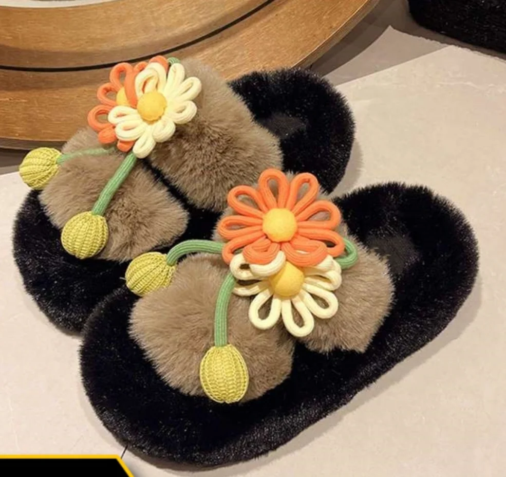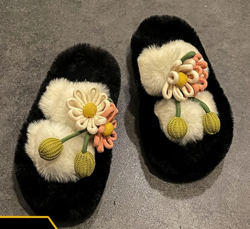 Fresh Flower Plüsch Damen, Bequem Casual, Leicht zu tragen, Hausschuhe fürs Büro, Baumwollpantoffeln mit dicker Sohle,