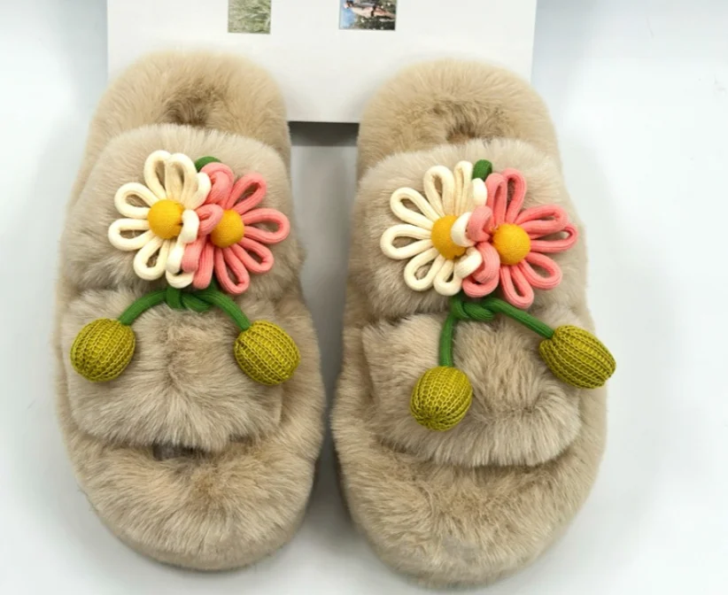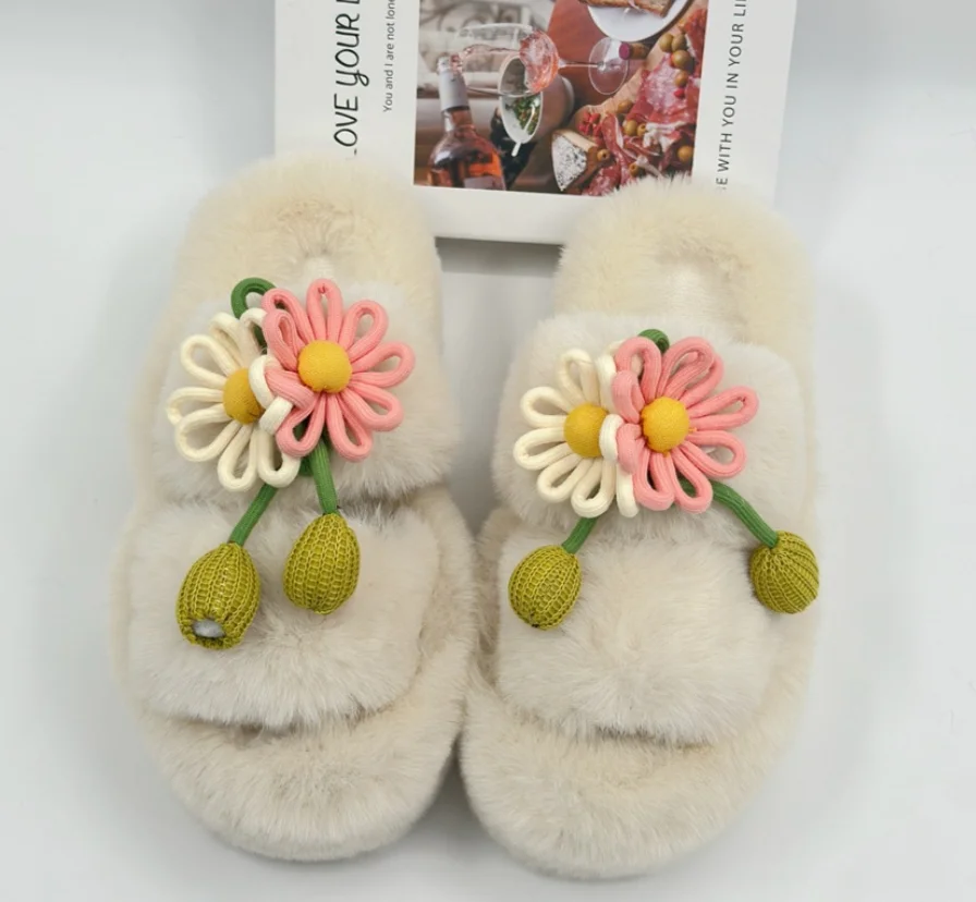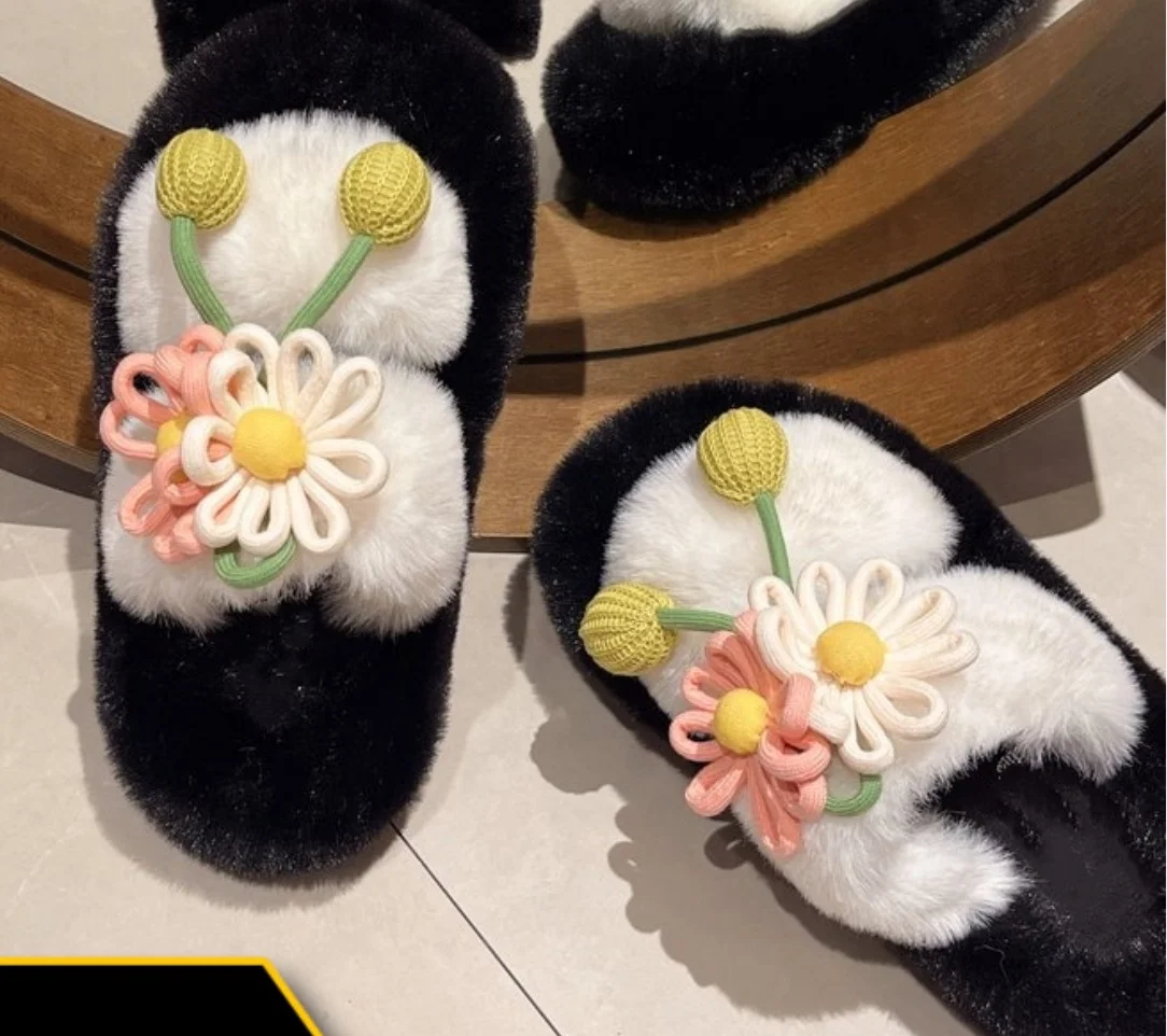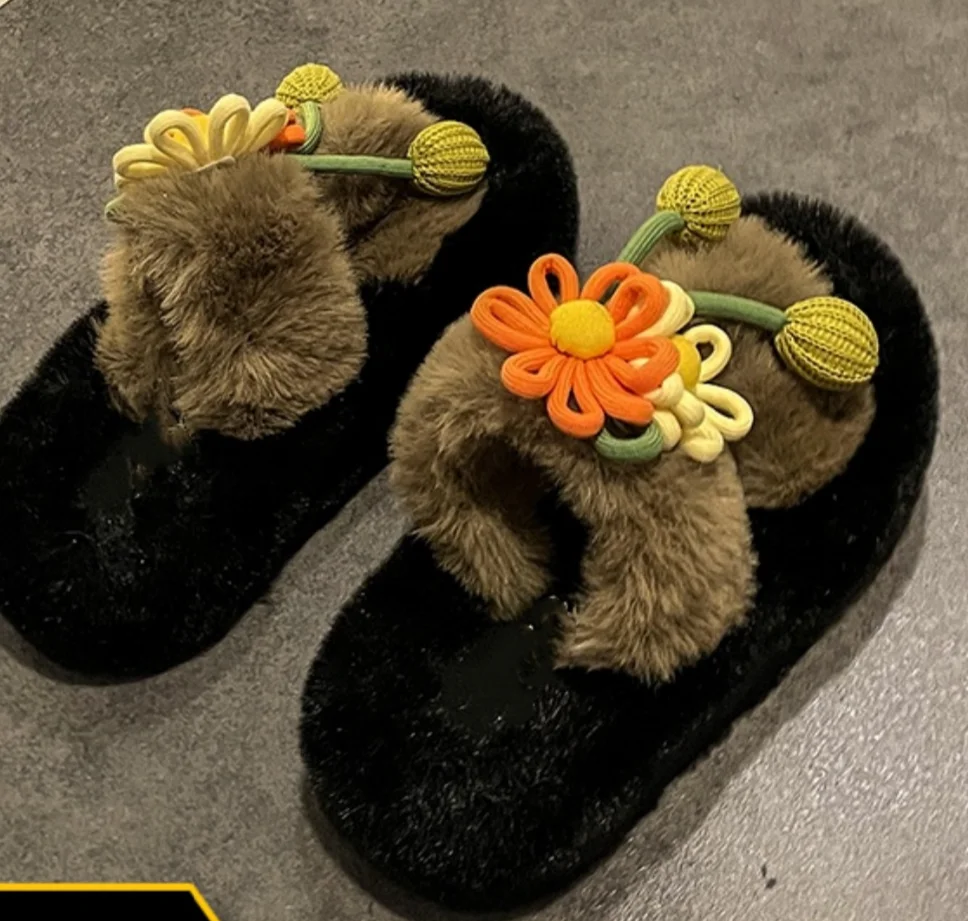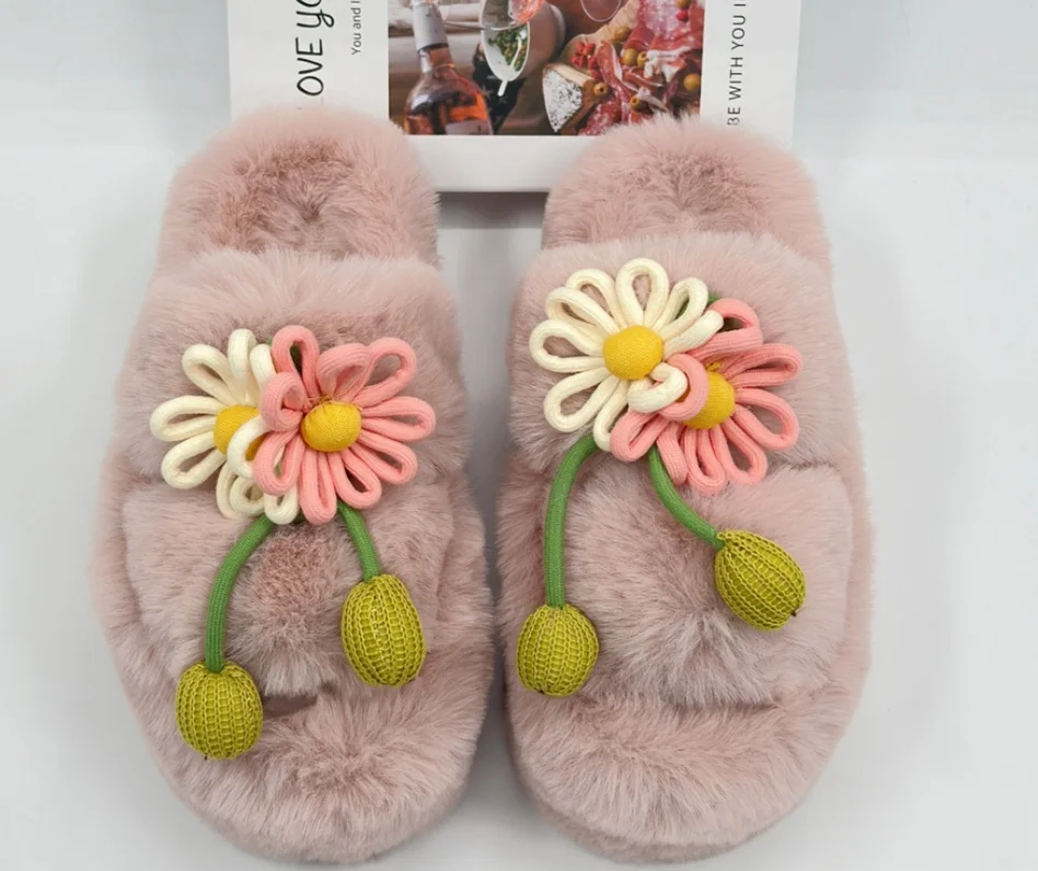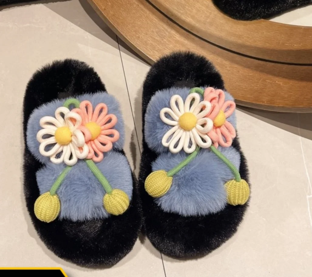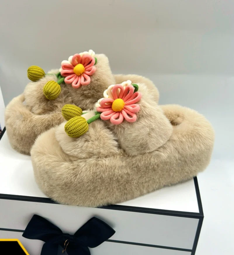 Fresh Flower Plüsch Damen, Bequem Casual, Leicht zu tragen, Hausschuhe fürs Büro, Baumwollpantoffeln mit dicker Sohle,