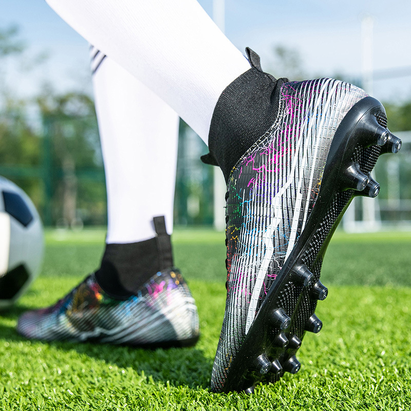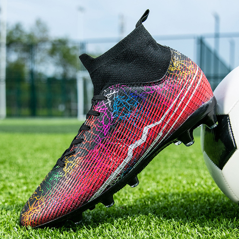 Football boot high top TF spiked men and women adult children's spiked shoes training shoes AG long nail artificial grass