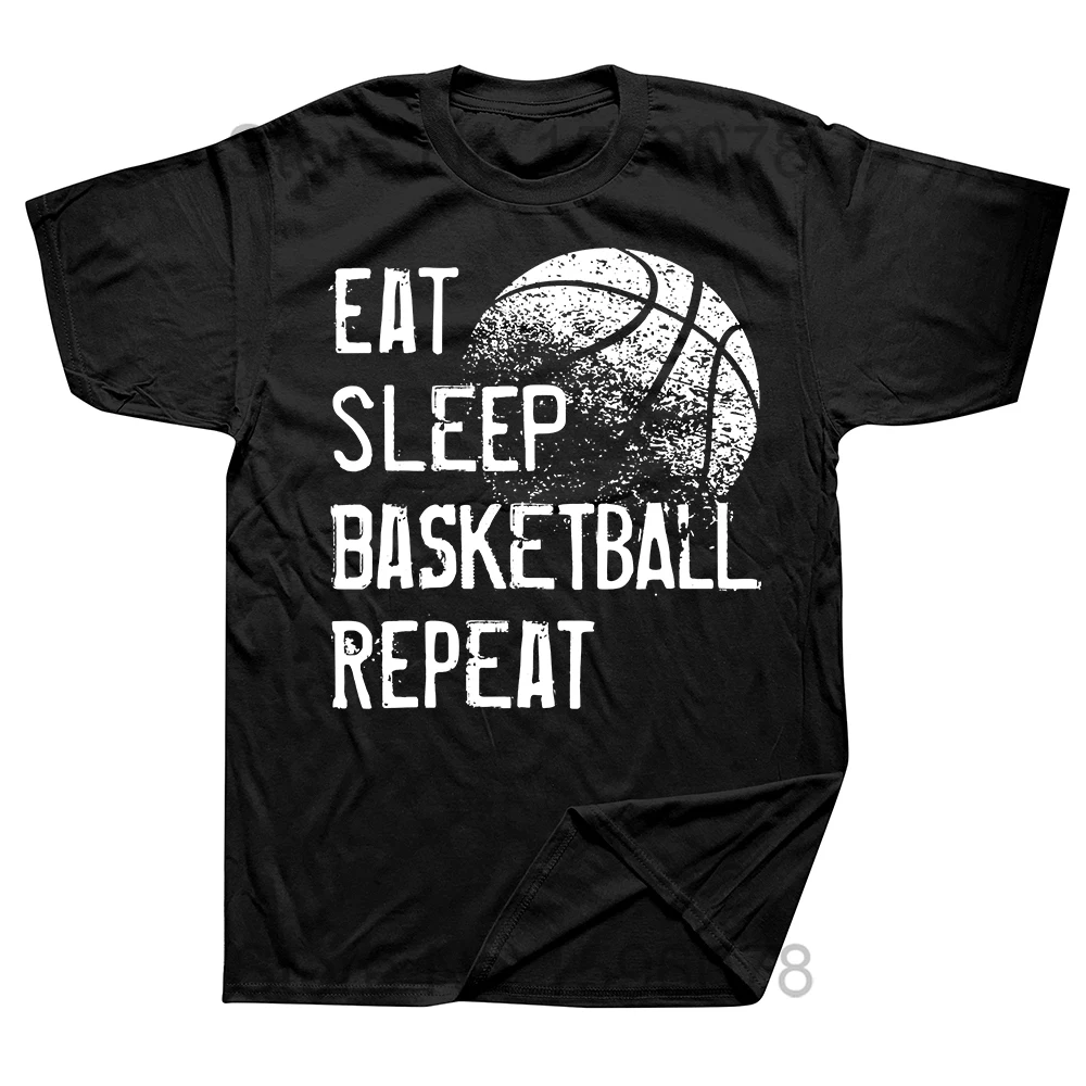 Lustiges Eat Sleep Basketball Repeat T-Shirt aus Baumwolle, Streetwear, kurzärmelig, Geburtstagsgeschenke, Sommer-Stil, T-Shirt für Herren