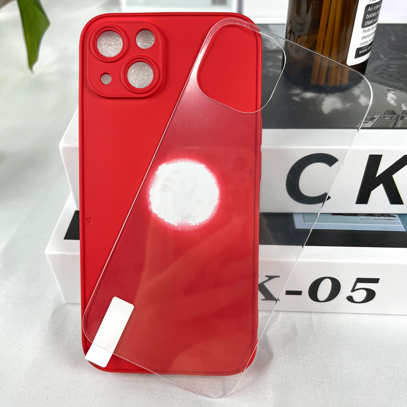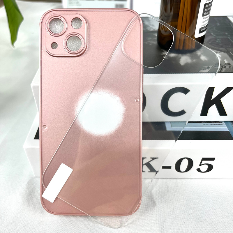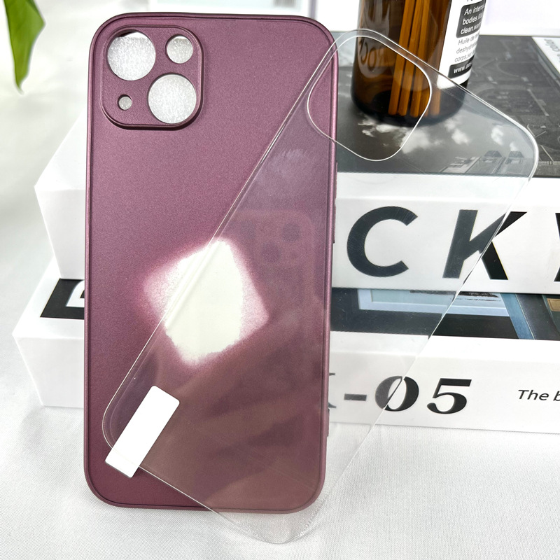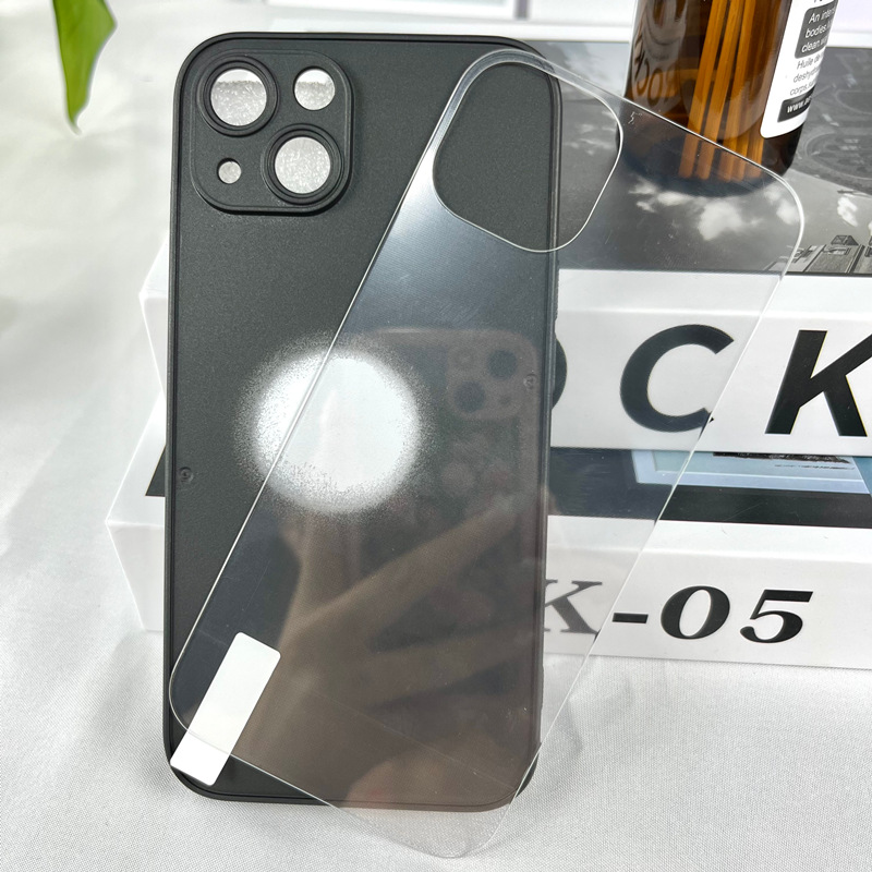 Suitable for Apple 15pro metallic paint glass case material iPhone 14promax straight edge fine hole