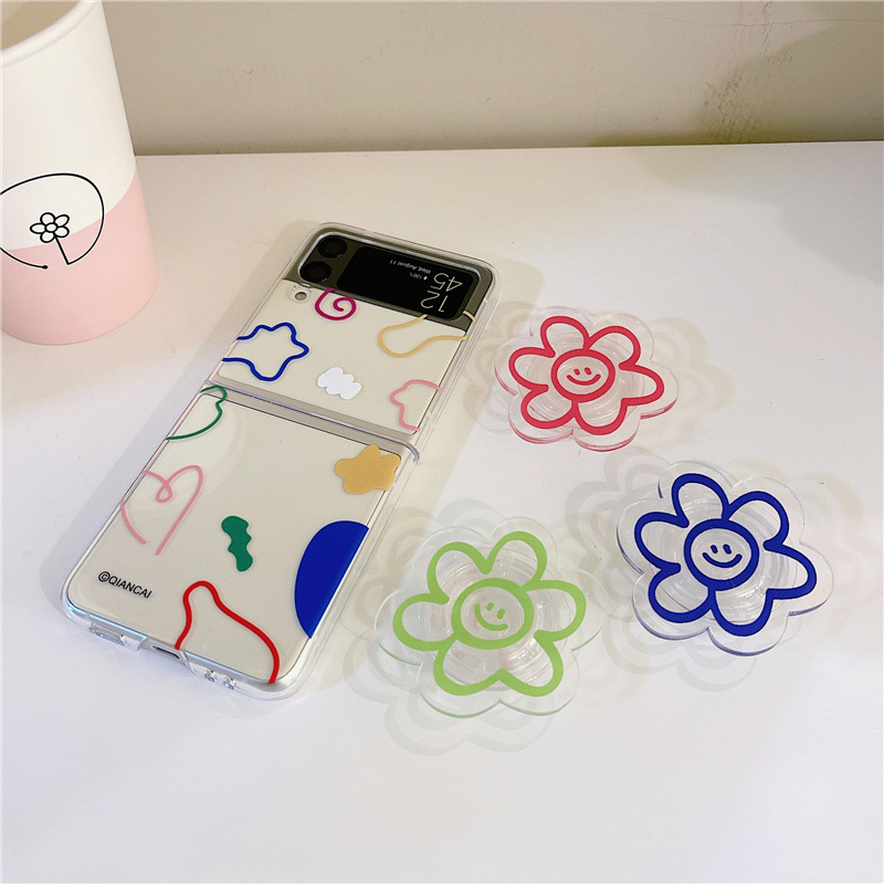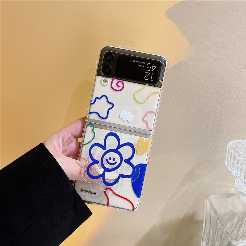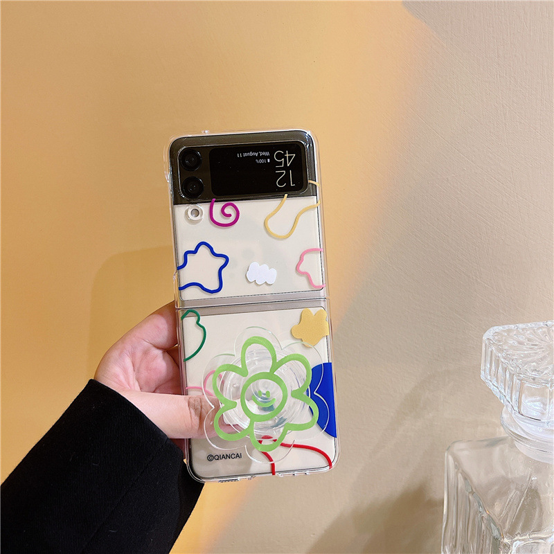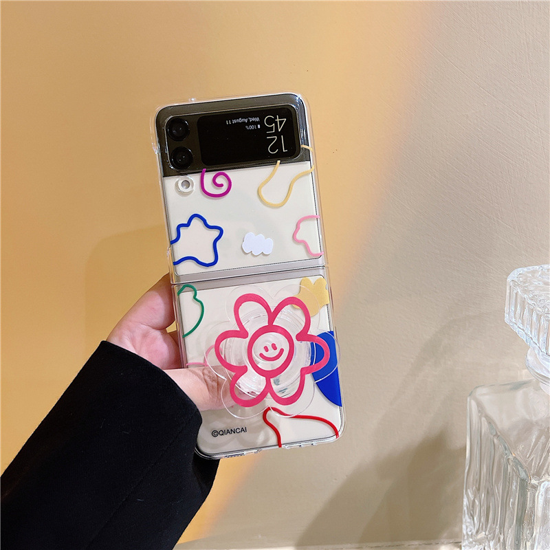 Geeignet für Samsung Z Flip4/3 faltbares Bildschirmtelefon, transparenter Blumenständer im koreanischen Stil, PC-Flip-Hartschale