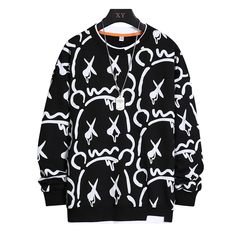 Gefälschte zweiteilige Hoodies im Frühjahr und 2022 neuer Trend bedruckte Rundhalsjacke für Herren im Herbst tragen vielseitige Kleidung