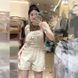 Curled straight tube workwear denim shoulder pants for women in summer, thin, small, age reducing jumpsuit, wide leg casual short pants
