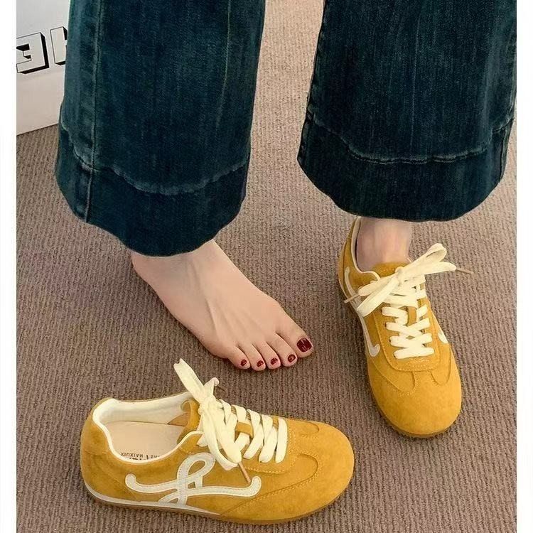Gelbe Leder-Trainingsschuhe für Damen, Damenschuhe, flach, lässig, Sportschuhe
